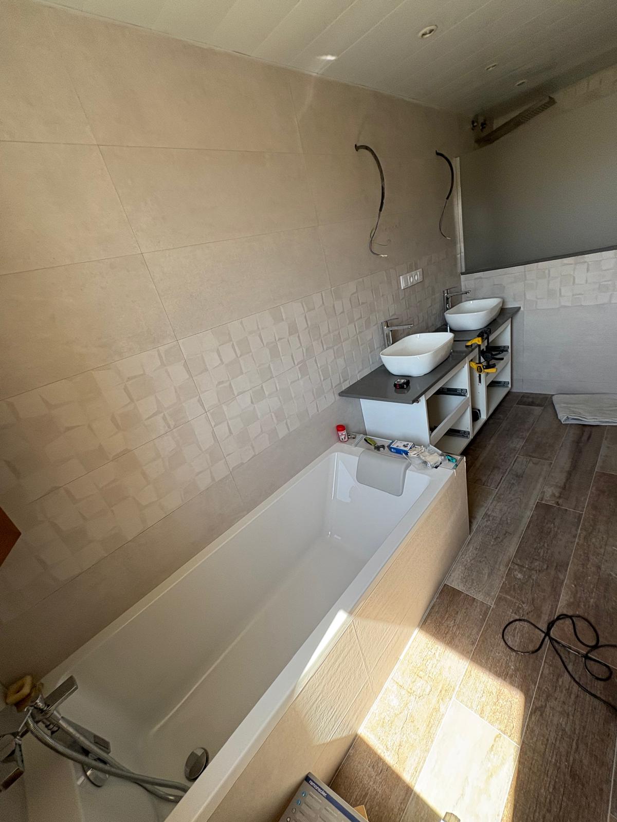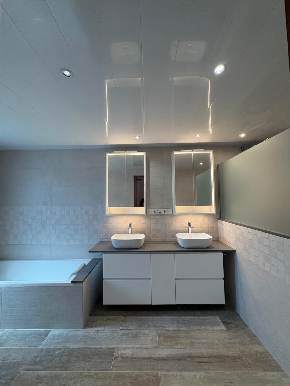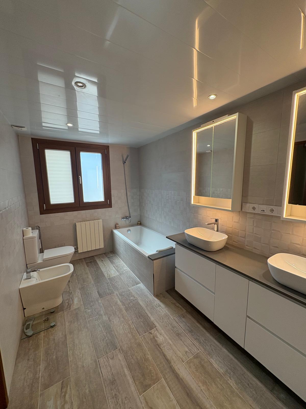 Renovar el baño ya no va solo de cambiar los azulejos y listo. Hoy un baño es un espacio de bienestar, de desconexión y, por qué no, de presumir un poco. En esta reforma integral hemos combinado bañera y plato de ducha extraplano, materiales de alta calidad y un diseño muy cuidado para conseguir un baño elegante, práctico y con efecto “wow” desde la puerta.