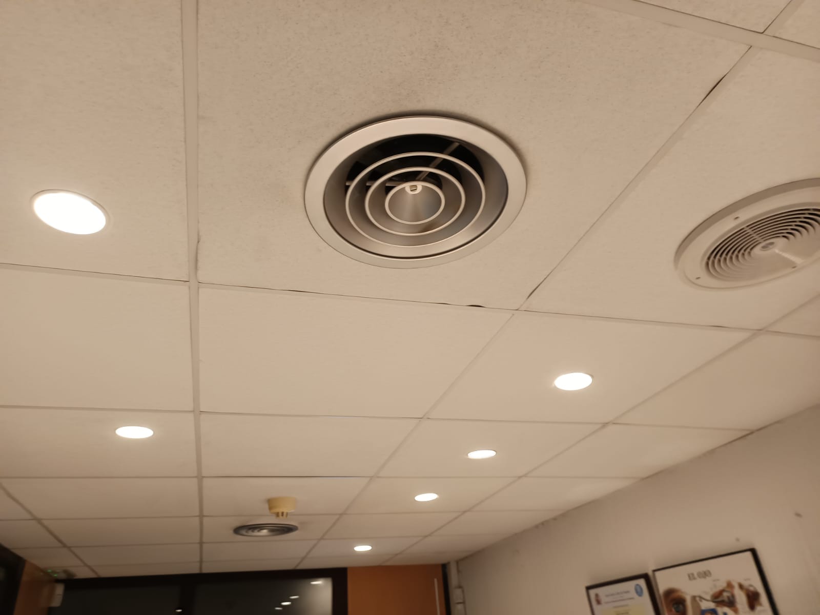 Techo: Sustituimos las viejas placas del falso techo por unas nuevas, saneando la parte superior del local.